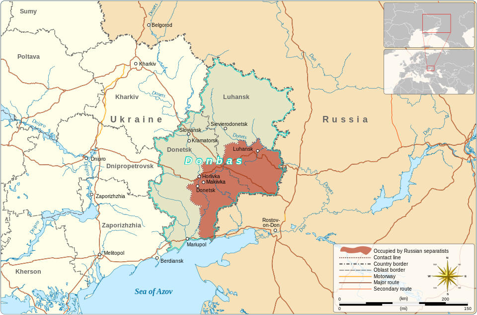 Mezitím již 14.4.2014 zahájila Ukrajina teroristickou válku proti Donbasu pod převráceným názvem ATO (údajně Anti Terorist Operation), později přejmenovanou „Joint Forces Operation“, údajně poté, co Igor 'Strelkov' Girkin a jeho lidé vyhlásili samostatnost DLR a LLR 12.4.2014, čímž začala válka na Donbasu 2014-2022 ... (Wikipedia pak tu stránku zrušila včetně historie změn a přesměrovala na rozsáhlejší War_in_Donbas ...)